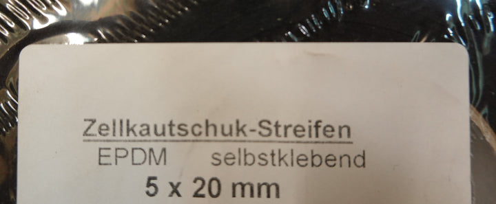 Zellkautschuk-Streifen 20 x 5 mm EPDM Dichtungsband 10 Meter Rolle, einseitig selbstklebend
