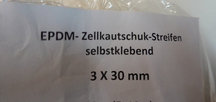 Zellkautschuk-Streifen 30 x 3 mm EPDM Dichtungsband 10 Meter Rolle, einseitig selbstklebend